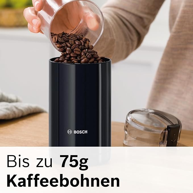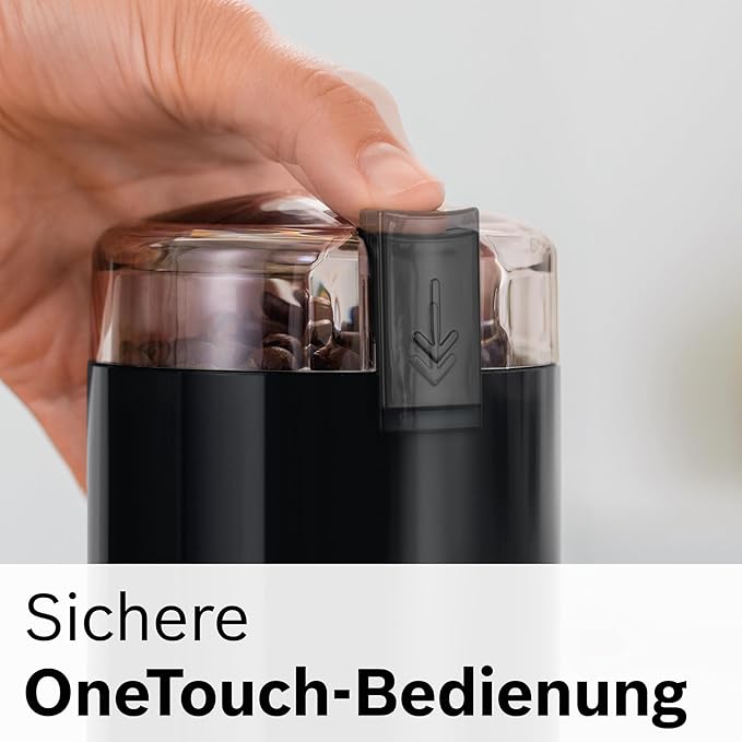 Die elektrische Kaffeemühle sorgt dank des Edelstahl-Schlagmessers für hohe Präzision und feines Mahlen. So holst du das volle Aroma aus jeder Bohne.